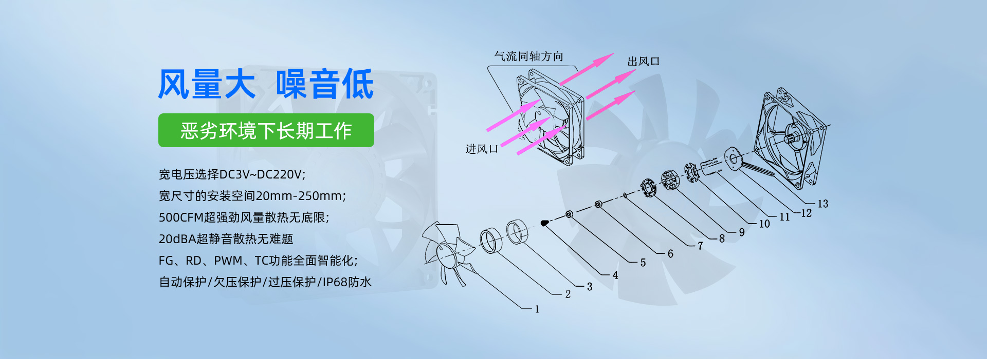 深圳市毅榮川電子科技有限公司于2005年創(chuàng)立于中國深圳、是一家專業(yè)研發(fā)、生產(chǎn)、銷售散熱風(fēng)扇的高科技企業(yè)。所生產(chǎn)的直流風(fēng)扇、交流風(fēng)扇、鼓風(fēng)機(jī)、防水/防塵風(fēng)扇、EC變頻風(fēng)扇、直流散熱風(fēng)扇、汽車散熱風(fēng)扇、靜音散熱風(fēng)扇、支架散熱風(fēng)扇、渦輪增壓風(fēng)扇、直流散熱風(fēng)機(jī)、直流離心風(fēng)機(jī)、直流鼓風(fēng)機(jī)、鼓風(fēng)機(jī)廠家、新能源風(fēng)扇、無刷馬達(dá)等,已廣泛應(yīng)用于:通訊設(shè)備、UPS電源、醫(yī)療器械、電焊機(jī)、工控設(shè)備、家用電器、空氣凈化行業(yè)、汽車行業(yè)、投影儀、美容儀器、運(yùn)動(dòng)器材等行業(yè)領(lǐng)域。